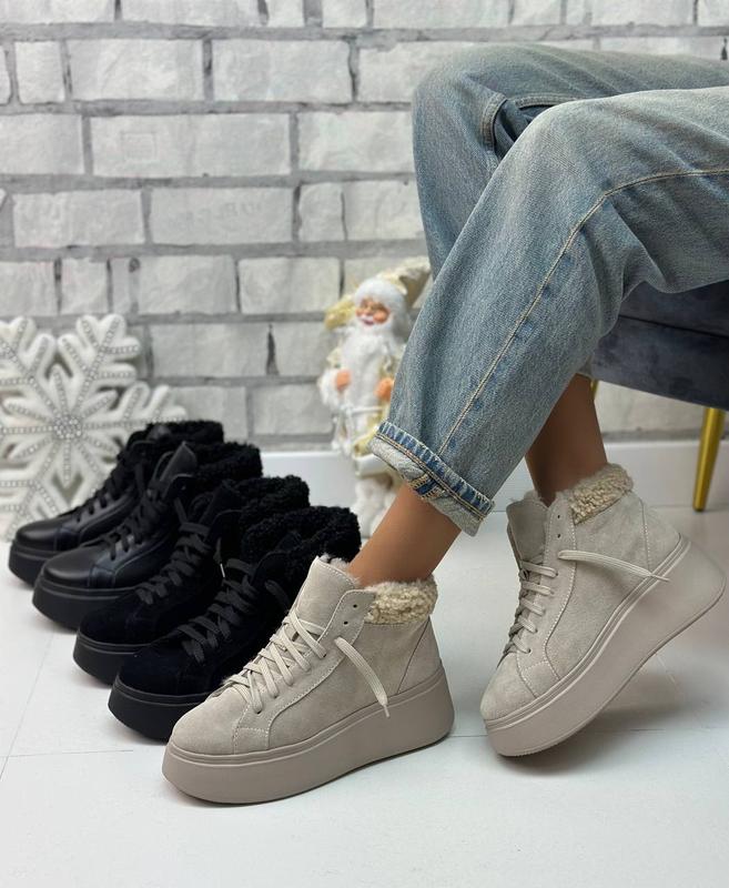 Матеріал: натуральна замша/шкіра Підкладка: хутро Сезон: зима ❄️ Висота підошви: 5 см Висота чобота: 11 см Розмір: 36-41 Артикул: чорна шкіра 52850 Артикул: чорна замша 52851 Артикул: беж замша 52852