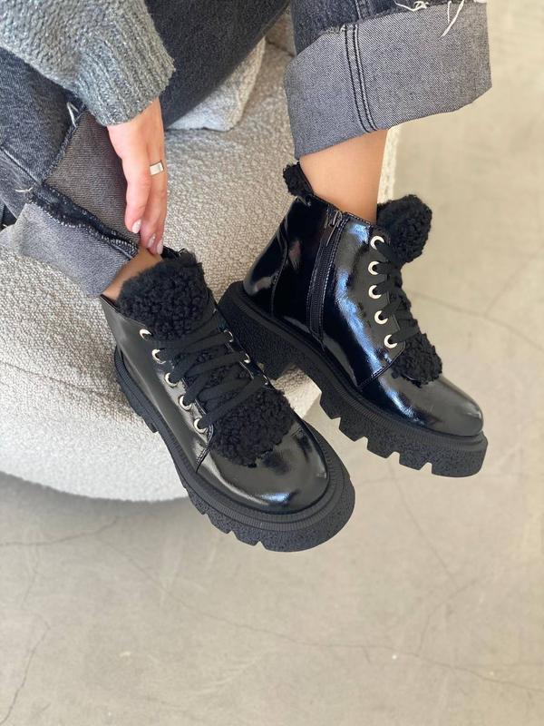 В наличии и доступны под заказ💥 код 100477 ( байка) : 36 37 38 39 40 код 100447-1 ( мех) : 36 37 38 39 40 "Червеки с мехом ""барашек"". Натуральная мягкая лакированная кожа. Подошва спереди 3 см, сзади 4,5 см. Высота от пятки 11,5 см. Сезон деми (байка внутри). Сезон зима ( внутри мех). Размерный ряд: 36-40 Цвет: черный. Сделано в Украине." БАЙКА 2650 грн ХУТРО 2770грн
