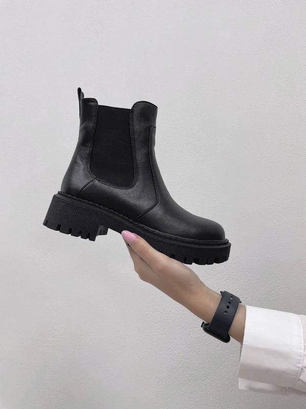 Материал: натуральная кожа Внутри: байка Подошва 2,5 см/4,5 см Высота 13 см (без подошвы) Цвет черный Материал подошвы: ТЕП
