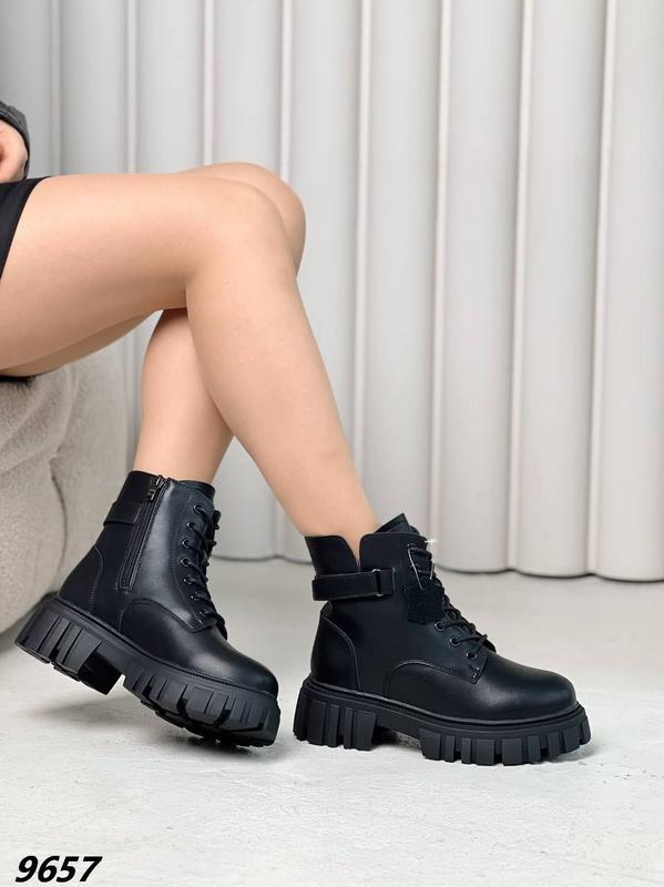 Матеріал натуральна шкіра. Сезон зима ❄️ Всередині еко хутро. Колір чорний ,🖤 На шнурівці🪢+ блискавка ⚡ Висота взуття від п'яти 13 см. Висота підошви 6 см. Розмірна сітка: 36 - 23,5 см 37 - 24,0 см 38 - 24.5 см 39 - 25,0 см 40 - 25,5 см 41 - 26,0 см Код 9657