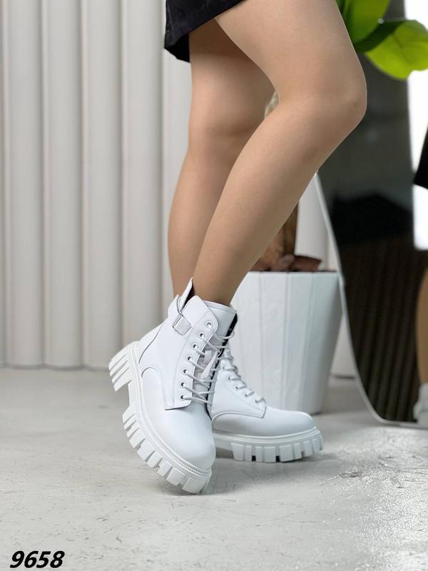 Материал натуральная кожа. Сезон зима❄️ Внутри эко мех. Цвет - белый. На шнуровке🪢+ молния⚡ Высота обуви от пятки 13 см. Высота подошвы 6 см Размер по сетке: 36 - 23,5 см 37 - 24,0 см 38 - 24.5 см 39 - 25,0 см 40 - 25,5 см 41 - 26,0 см Код 9658