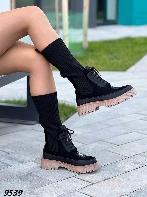 Сезон зима ❄️ Материал эко замша + эко кожа + обувной текстиль. Внутри набивной мех. Цвет BLACK 🖤 Высота подошвы 4 см. Высота от пятки 31 см. Размер по сетке: 36 - 23,5 см 37 - 24,0 см 38 - 24.5 см 39 - 25,0 см 40 - 26,0 см Код 9539