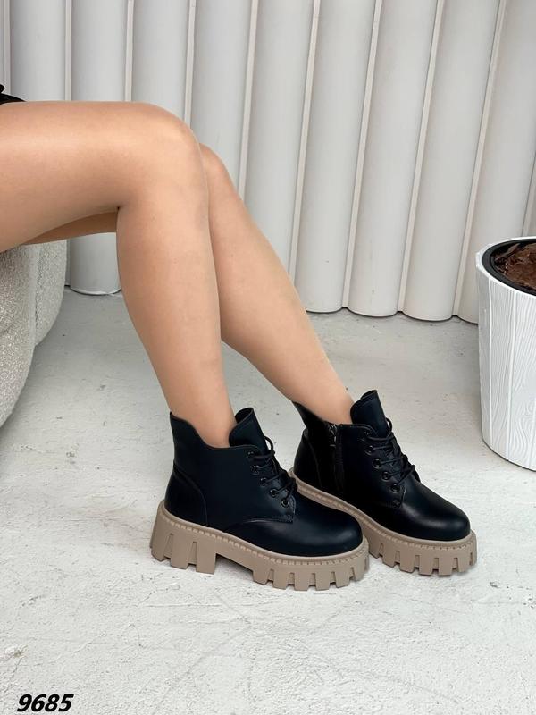 Цена 🔥 Сезон зима ❄️ Материал натуральная кожа. Внутри эко мех. Цвет черный + беж. На шнуровке. Высота обуви от пятки 12 см. Высота подошвы 6,5 см Размер по сетке: 36 - 23,5 см 37 - 24,0 см 38 - 24.5 см 39 - 25,0 см 40 - 25,5 см 41 - 26,0 см Код 9685