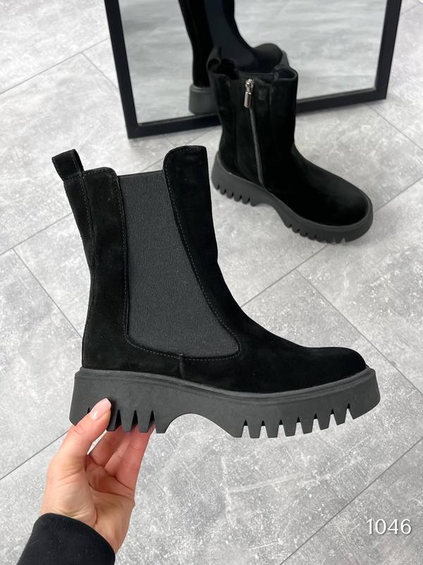 Код 1046 Черевички ARTO зима ❄️ Цвет: черный Материал: НАТУРАЛЬНАЯ Замша Сезон: ЗИМА ❄️(набивна вовна ) Подошва : 4см Размерность: 36-40 36-23см 37-24 см 38-24,5 39-25см 40-26 см Цена : 2100 грн