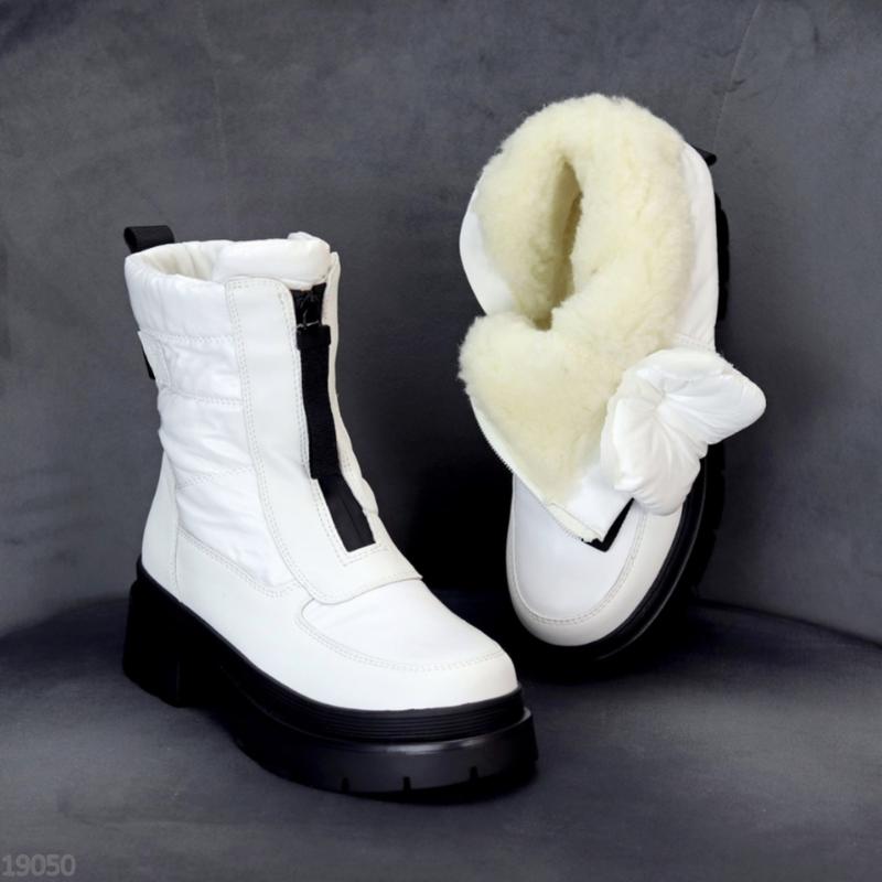 Код 19050 Размеры 36-41 Черевики "Trees" Материал - НАТУР. ШКІРА/Болонья Внутри - Полушерсть 70/30 Сезон - Зима Цвет - Белый Высота от пятки - 15см Подошва - 5,5см/3,5см Производитель - Фабричный Китай На среднюю стопу Размер в размер 36-23 37-24 38-24,5 39-25 40-25,5 41-26 Цена 1430 грн