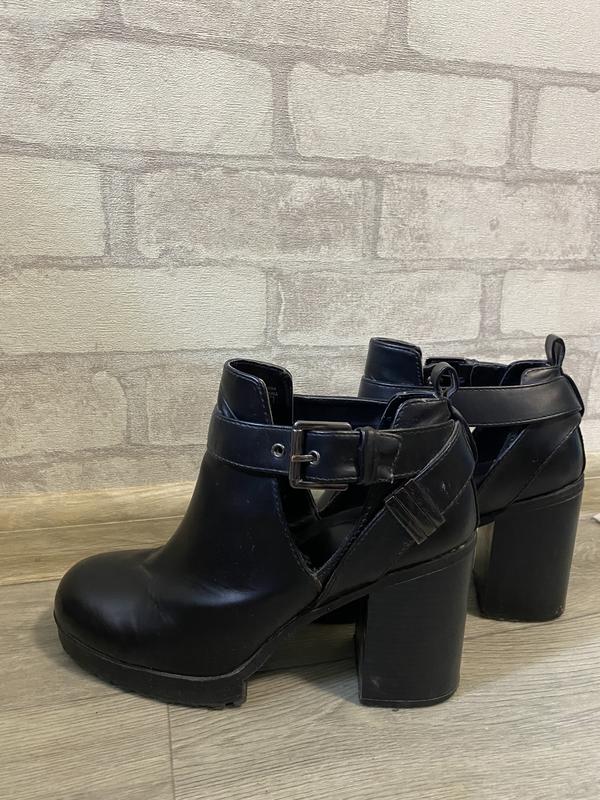 Крутые ботинки, на удобном и устойчивом каблуке По стельке 24,5 см, высота каблука 9 см, ширина 6,5 см Есть потертости спереди на носке и на каблуке ( можно украсить) см. фото