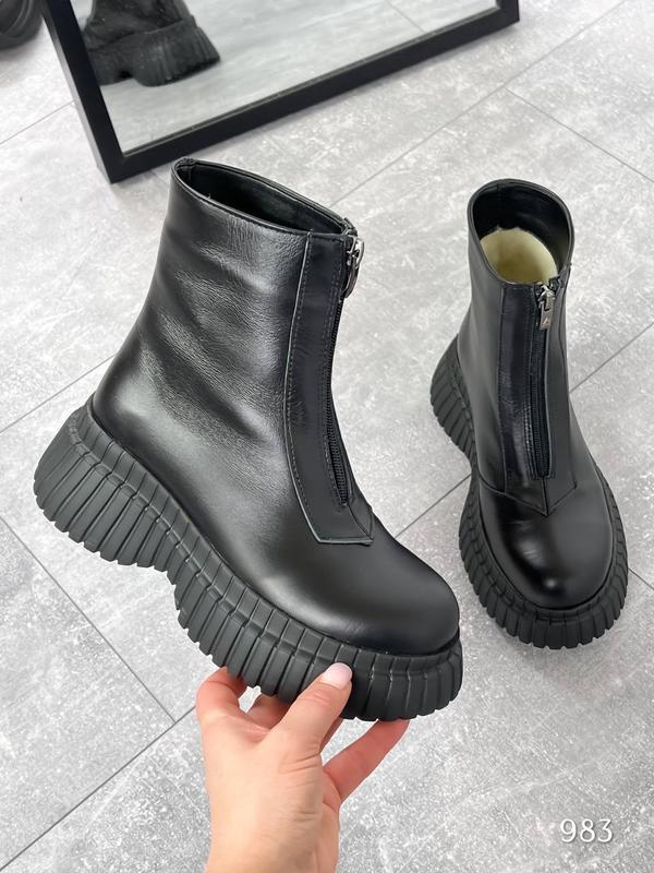 Код 983 Ботиночки зимние Mussa Цвет: черный Материал : Натуральная кожа Сезон : зима ( набивне хутро) Подошва : 5,5 Размеры: 36-40 36 - 23см 37 - 23,5см 38 - 24,3см 39 - 25см 40 - 25,5 см Цена: 1900 грн