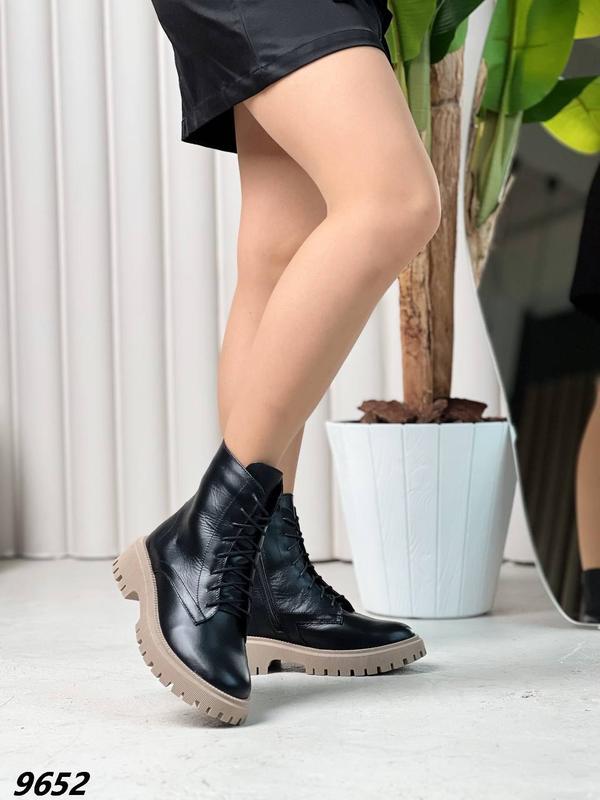 Код 9652 Сезон зима ❄️ Материал натуральная кожа. Внутри полушерсть 70/30. Цвет черный на беж подошве. Высота подошвы 4,5 см. Высота от пятки 14 см. На молнии ⚡ Производитель Украина 💙💛 Размер по сетке: 36 - 23,5 см 37 - 24,0 см 38 - 24.5 см 39 - 25,0 см 40 - 26,0 см