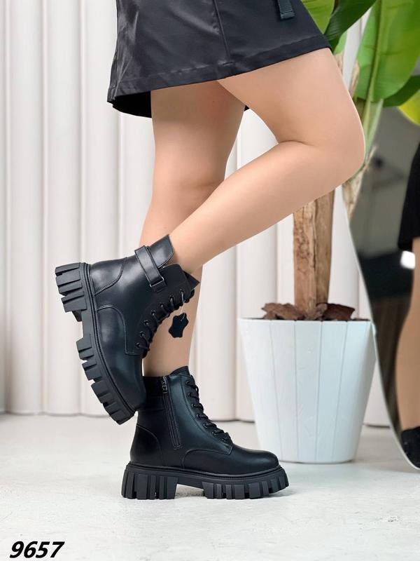 Код 9657 Матеріал натуральна шкіра. Сезон зима ❄️ Всередині еко хутро. Колір чорний 🖤 На шнурівці + блискавка ⚡ Висота взуття від п'яти 13 см Висота підошви 6 см Розмірна сітка: 36 - 23,5 см 37 - 24,0 см 38 - 24.5 см 39 - 25,0 см 40 - 25,5 см 41 - 26,0 см