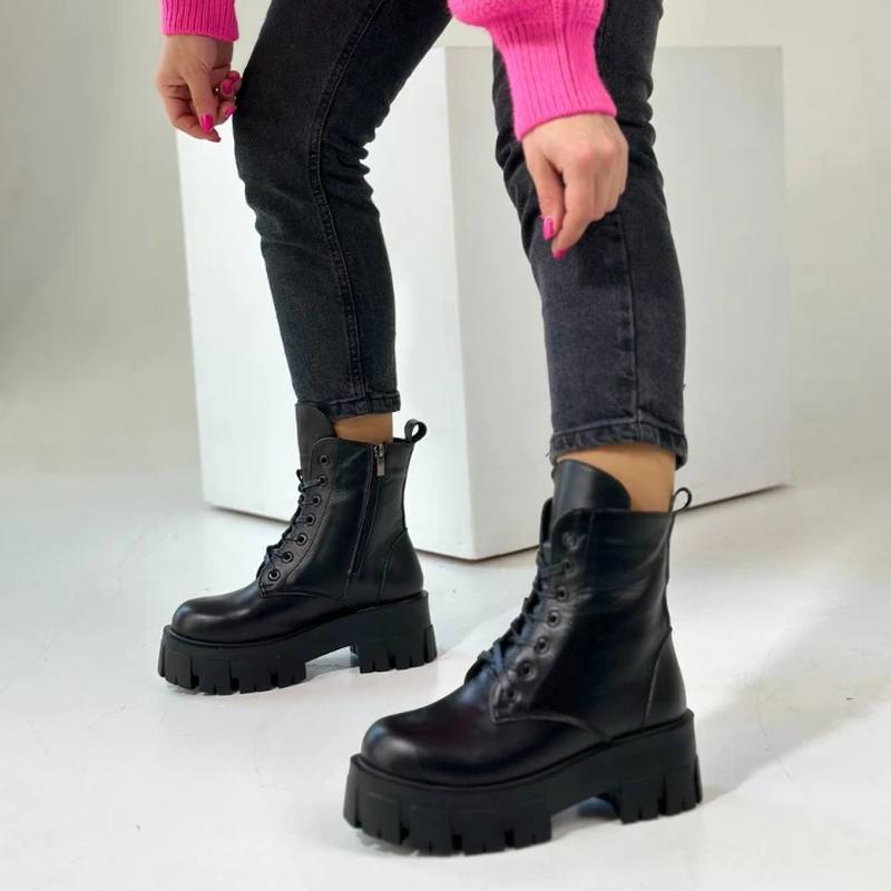 🔥ЗНОВУ В НАЯВНОСТІ🔥 Код товару 6059 Стильные ботинки Цвет - черный. Материал - НАТУРАЛЬНАЯ КОЖА. Сезон: зима Утепленные мехом Высота от пятки 15 см. Высота подошвы - сзади 6 см. спереди 4,5 см. Размер по сетке: 36= 23 5см 37= 24 см 38= 24,5 см 39 = 25,5 см 40 = 26 см