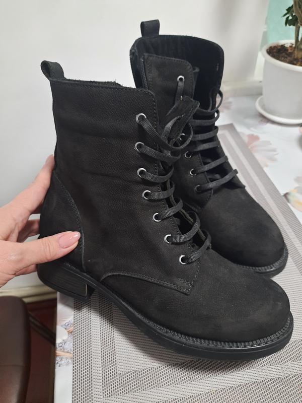Утепленные ботинки, из нубука.Черные.Размер 38.Возднутые один только раз.Высота их от подошвы 16 см.