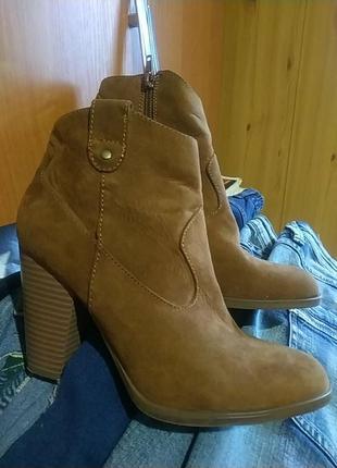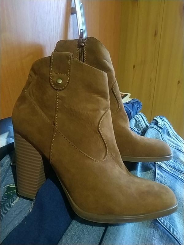 Ботінки з текстилю під замшу, приємний коричневий колір, розмір 36 22,5-23 см. Підбори 9 см. Дуже зручні.