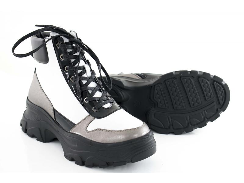 Модные женские зимние ботинки из натуральной кожи в спортивном стиле. Обувь утеплена шерстью на шнуровке со змейкой в белом цвете. Украина, кожа, черный, зима, шерсть