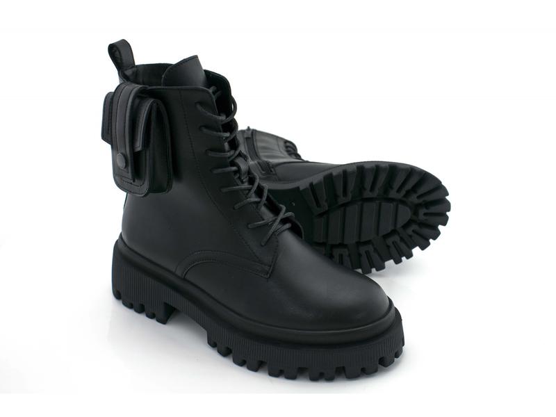 Трендовые оригинальные женские ботинки из мягкой и плотной натуральной кожи. Обувь со змейкой на застёжке. Утеплены плотной шерстью. Украина, кожа, черный, зима, шерсть