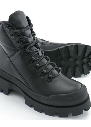 Оригинальные трендовые женские зимние ботинки из натуральной гладкой кожи. Обувь утеплена плотной шерстью, на высокой подошве, со шнуровкой и змейкой. Надежные и стильные. Украина, кожа, черный, зима, шерсть