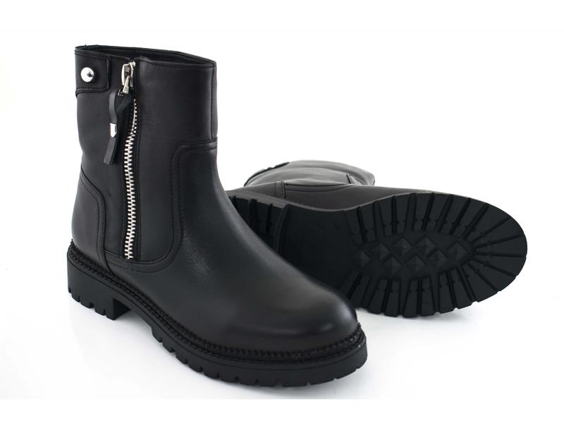 Тёплые женские кожаные ботинки на шерсти. Обувь на змейке и прорезиненной подошве, зимняя, в черном цвете.