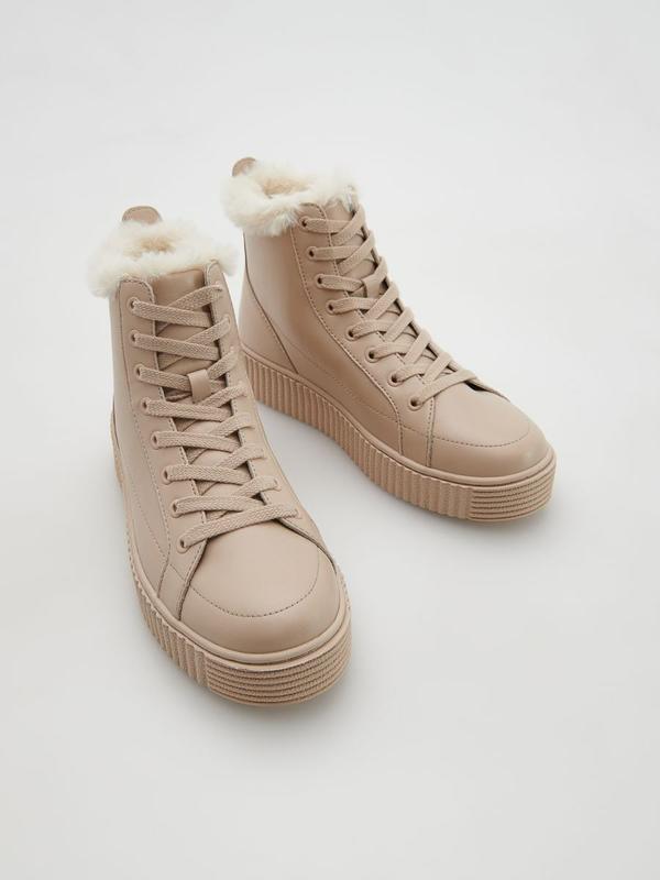 Кожаные ботинки, кеды Reserved утеплены искусственным мехом. Кожа натуральная. В наличии размер 41 (26.5 см). На шнурках.