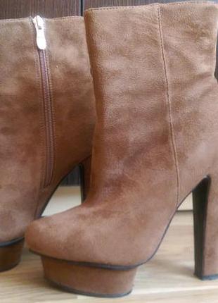 Ботильйоны коричневого цвета под замш, высота каблука 13см, платформа - 3см