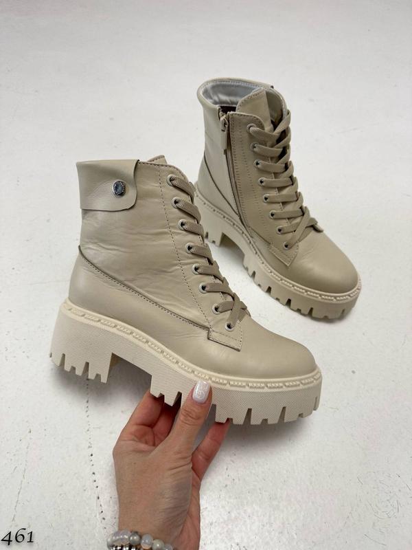 Код 461 Черевики Демі, колір: Світлий Беж, матеріал: Натуральна Шкіра всередині: Байка висота 12,5 см підошва сзаду 6 см спереду 4 см виробник Україна якість LUX з 36 по 40 розмір в розмір 36=23,5 см 37=24 см 38=24,5 см 39=25,5 см 40=26 см доступні на замовлення на відшив з 36 по 40
