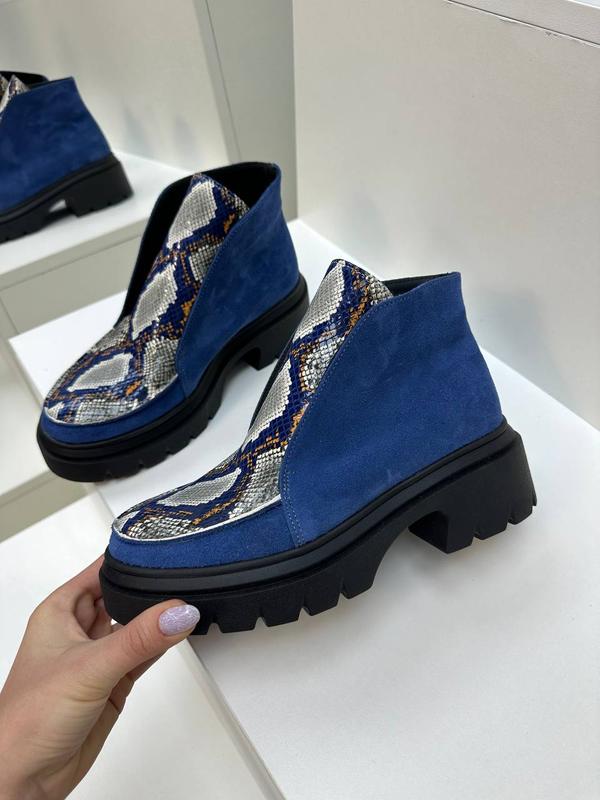 Ботинки хайтопы из натуральной замши и кожи с тиснением