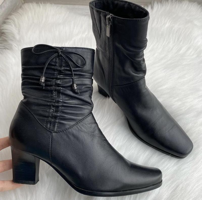 Кожаные ботиночки в винтажном стиле, украшены бантиками 😍 🎀 ▫️Состояние: идеальный ▫️Состав: натуральная кожа, внутри есть утеплитель ▫️Размер: 37 (по стельке 25 см) на узкую ножку ❗️ Ширина по подошве 7,5 см Каблук 5,5 см