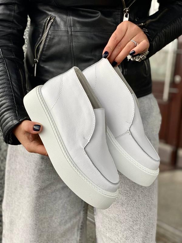 🔝код 8521 Топові снікерси Матеріал: НАТУР ШКІРА Сезон: Демі (фліс) Зручні та легенькі висота 9,5 см, підошва 4,5 см Колір білий р-сть 36-41 36-23,5 см 37-24 см 38-24,5 см 39-25 см 40-25,5 см 41-26 см