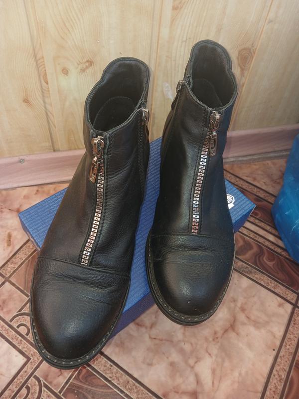 Красивые кожаные ботинки, есть небольшой флис. Без дефектов. Сбоку на молнии. Размер 39.