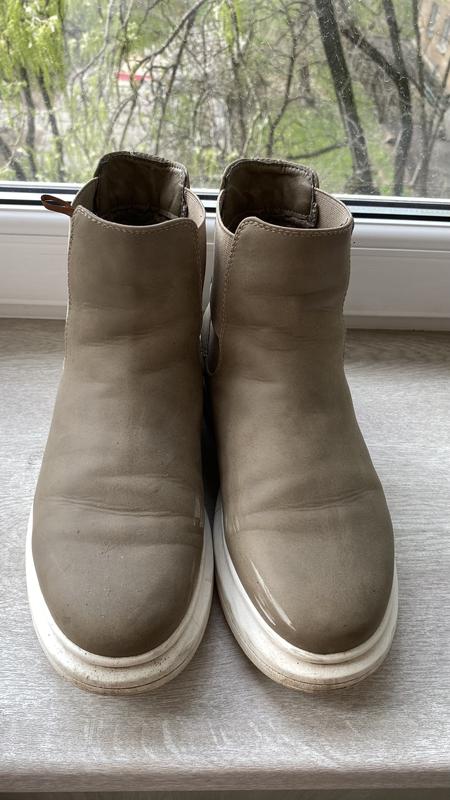 Спортивные ботинки на весну-осень. 39 размер на среднюю ножку, Next, Материал типа нубука, но искусственный, не промокают. По подошве 29 см, но это за счет белой подошвы, которая шире по стельке. Имеются нюансы, белые полосы, на фото видно. Удобные, мягкие)