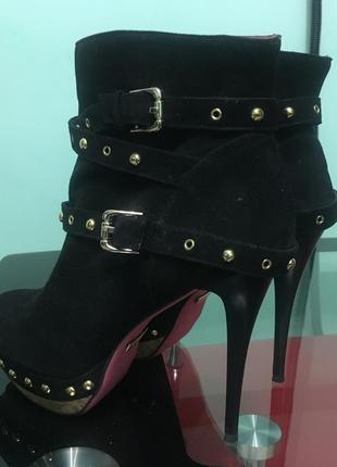 Зам/замш хотя похож на настоящий По стельке 24,5 каблук 12 см Платформа спереди 4 см Нужно пройтись краской для замши