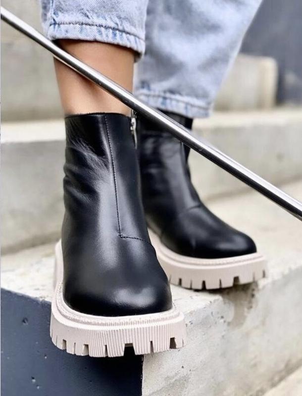 Черевики натуральна шкіра. Дуже зручні, красиво та стильно виглядає на ніжці. Демісезон, розміри: В наявності Чорні-36, 37 р. На світлій підошві-,36,37,38,40. Устілка: 36 р. 23 - 23 см 37 р. 23,5- 23,5 см 38 р. 24 -24 см Размер 36: длина стопы 23 см, полуобхват верха 13 см, высота каблука 4 см, толщина подошвы 2,5 см, высота без подошвы 12,5см. Размер 37: длина стопы 23,5см, полуобхват верха 13 см, высота каблука 4 см, толщина подошвы 2,5 см, высота без подошвы 12,5см. Размер 38: длина стопы 24 см, полуобхват верха 13 см, высота каблука 4 см, толщина подошвы 2,5см, высота без подошвы 12,5см.