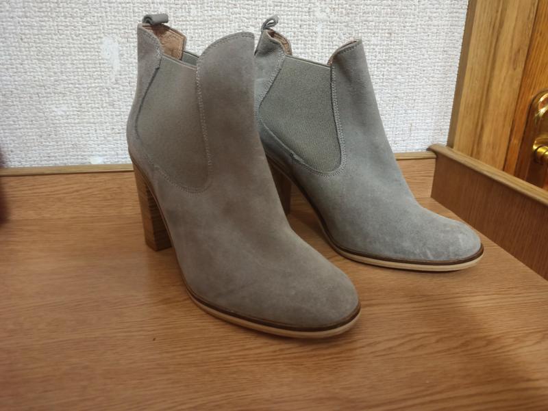 Ботинки замшевые, размер 38- маломерят. Каблук чуточку стирай.
