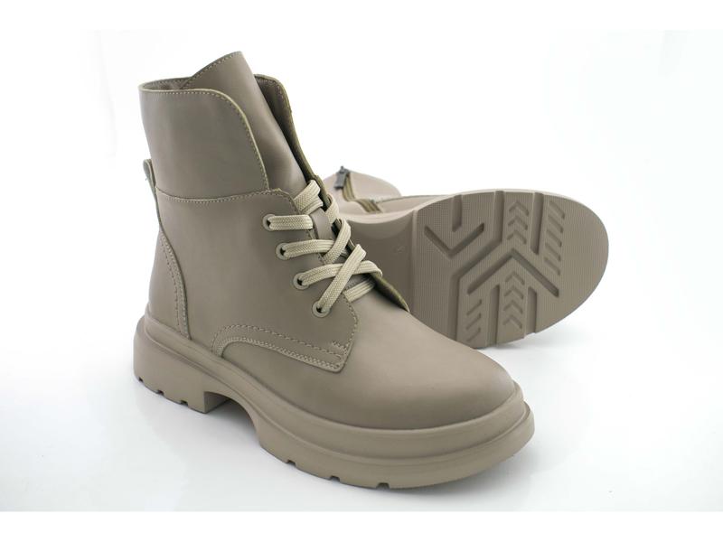 Стильные и надежные осенние женские ботинки из гладкой натуральной кожи. Обувь утеплена плотной байкой, со змейкой и на шнуровке. Очень лёгкая модель благодаря подошве из пены. Украина, кожа, бежевый, демисезон, байка