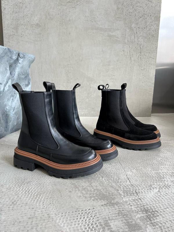 Код 12575-12576 Челсі ДЕМІ Натуральна замша/шкіра Колір Чорний Всередині байка Висота від підошви 17см Підошва 6см-4см Розмір у розмір Виробник Харків 36-23,5см 37-24см 38-24,5см 39-25,5см 40-26см
