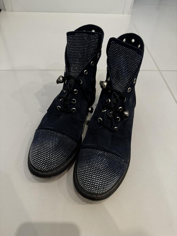 🖇️Размер 36. Новые 😻 Шикарные итальянские ботинки, из мягенькой замши, с акцентными вставками страз. Подойдут как под платье, так и под джинсы. Очень классная фурнитура с черепками
