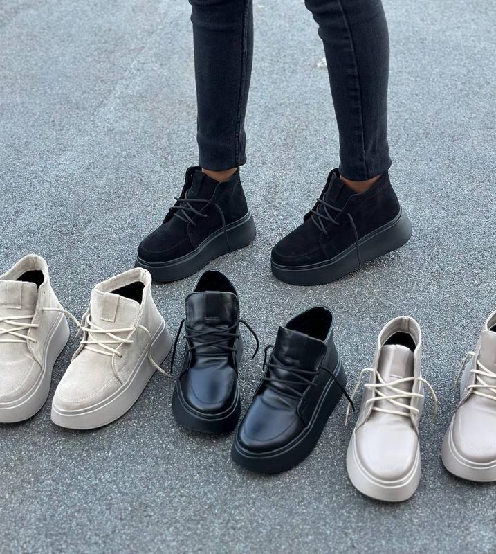 Деми ботинки хайтопы на шнурке натуральная кожа замш байка подошва 5см