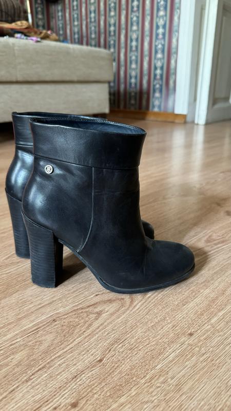 Сапоги кожаные черные Tommy Hilfiger демисезонные размер 38 24 см в хорошем состоянии (смотрите фото) каблук 8 см