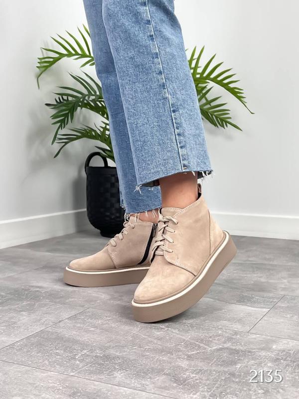 2 ЗНОВУ В НАЯВНОСТІ Код 2135 Черевички Kille Цвет: бежевый Материал : Натуральная замша Сезон : Деми ( байка) Подошва :4 см Размеры: 36-40 ( размер в размер) 36 - 23,5 см 37 - 24,0 см 38 - 24.5 см 39 - 25см 40 - 26 см