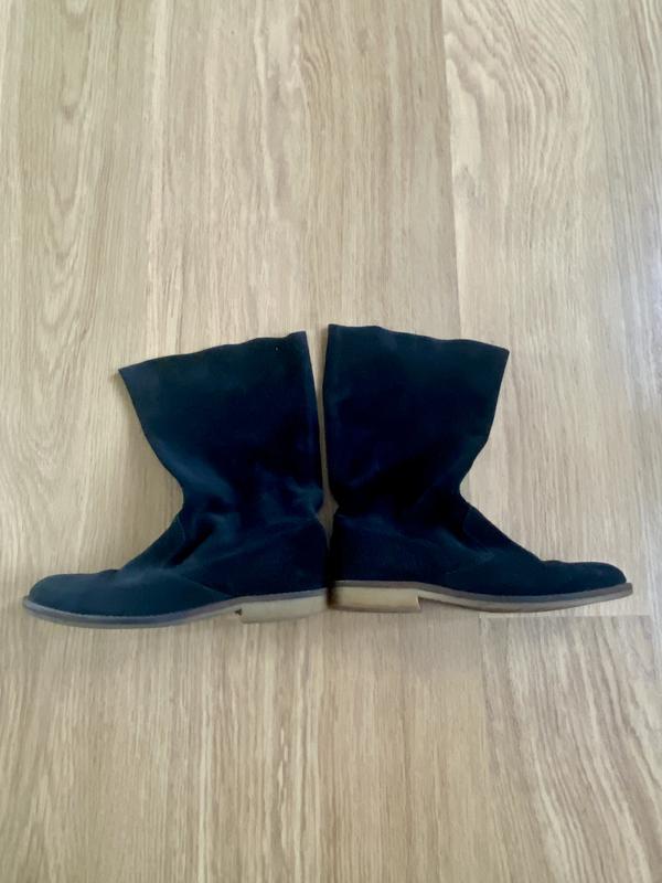 Замшевые ботинки в идеальном состоянии, разбленные из цельного куска кожи, в середине тоже кожа, подошва полиуретан.