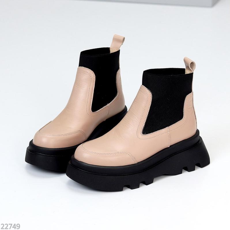 Черевики арт 22749 Размеры: 36-40 Материал: натур кожа/эластичные вставки по бокам Внутри: флис Сезон: деми Цвет: беж/черный Высота от пятки: 12см Подошва: 6см/4см Производитель - Украина На среднюю стопу Размер в размер 36-23 см 37-24 см 38-24,5 см 39-25 см 40-26 см Цена дроп/опт: 2050 грн