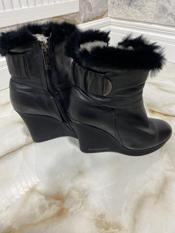 Женские черные кожаные ботинки, не искусственные, на платформе, очень удобный, верх ботиночка отделан натуральным мыхом, внутри тёплая шерсть.