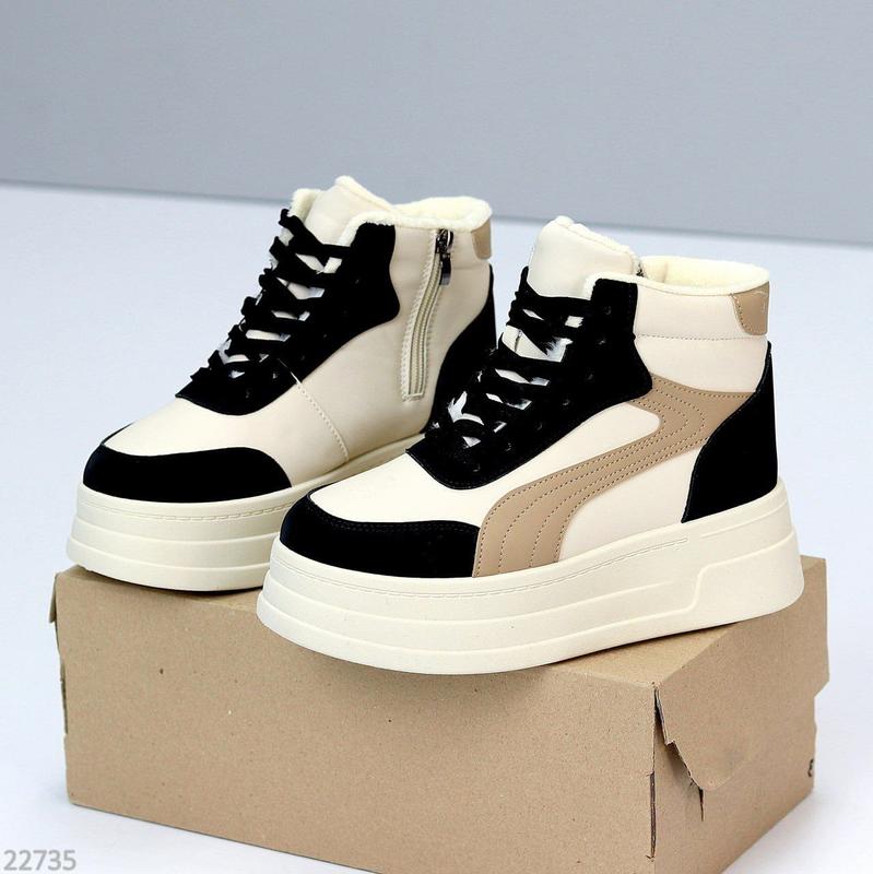 ⬆️НОВИНКИ Код 22735❣️ Размеры 36-41 Хайтопы "Levory" Материал - Эко кожа/Эконуук Внутри - Экомех Сезон - Зима Цвет - Беж/Черный/Мокко Высота от пятки - 9,5см Подошва - 5,5см/4см На среднюю стопу Размер в размер 36-23,5 37-24 38-24,5 39-25 40-26 41-26,5