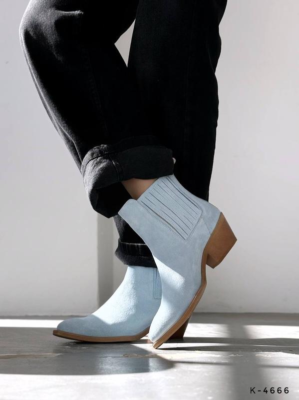 Трендовые ковбойки, ботинки, голубой, натуральная замша, деми/ зима