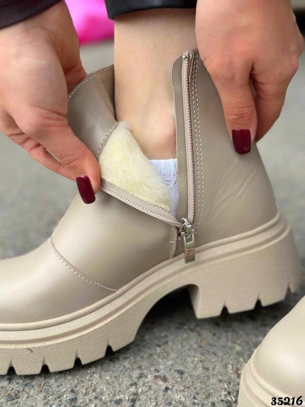 ▪️зимові теплі натуральне хутро натуральна шкіра жіночі бежеві черевики чоботи ботинки грі...