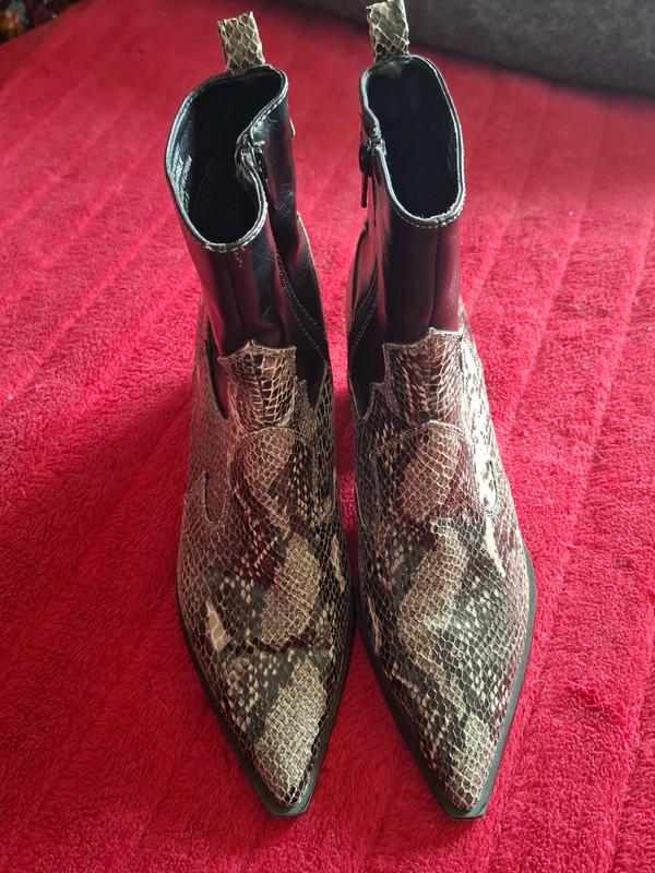 Сучасна модель козаків в ідеальному стані, майже нові, з незначними слідами шкарпетки. Штучна шкіра. Без вад. Дуже гарна модель. Устілка, приблизно, 26,0 але на стопу 24-24,5 т.к. звужений носок. Пишіть, з радістю відповім на запитання. Розпродаю свій гардероб, багато хороших речей, стан ідеальніший, я дуже акуратно тягнеться до речей. Є нові. Є відправлені з Америки. Є неношені. Дивіться інші мої продажі. Буду дуже вдячна за покупку.