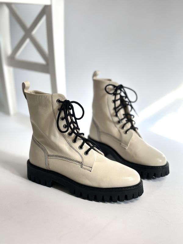 🔻размер: указан: 38 🔻замеры: 👉. 24-24,5 см каблук - 4 см ширина стельки -8,5 см высота Повна - 20 см ширина зверху- 13 см 🔻состояние: новые 🔻матерЬ : похоже на кожу 🔻утеплитель: нет 🔻цвет: молочные