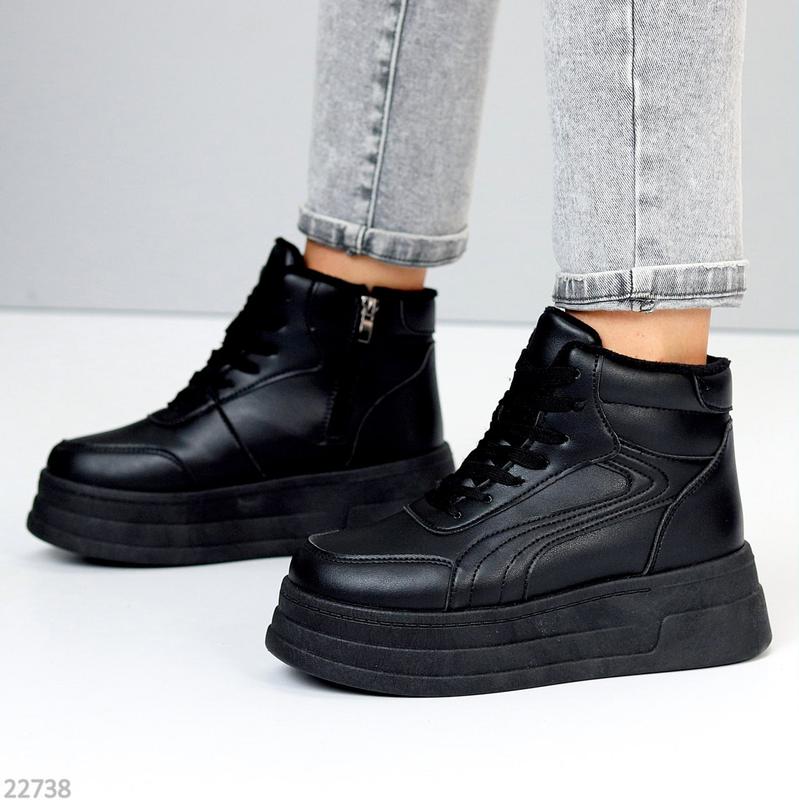 💫💜Снова в наличии💜💫 Код 22738 Размеры 36-41 Хайтопы "Levory" Материал - Эко кожа Внутри - Экомех Сезон - Зима Цвет - Черный Высота от пятки - 9,5см Подошва - 5,5см/4см На среднюю стопу Размер в размер 36-23,5 37-24 38-24,5 39-25 40-26 41-26,5 1050 грн