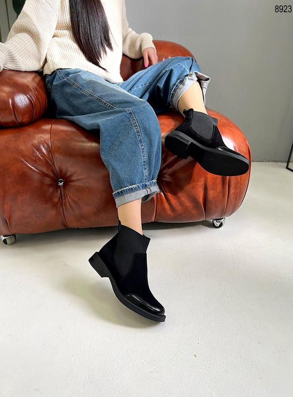 ❤️ в наличии код 8923 - 36 40 41 Деми ботинки -Натуральная замша + лак, + стрейчева гумка ▫️ деми- внутри байка -цвет - BLACK, ▫️подошва спереди 1,5 см позаду 3 см высота от пятки 12 см 🔸Топ качество 🔹размеры 36-41 🔸производство Харьков ▫️2600 грн 36=23,5см 37=24,2 см 38=24,7 см 39=25,5 см 40=26,2см 41=26,7 см