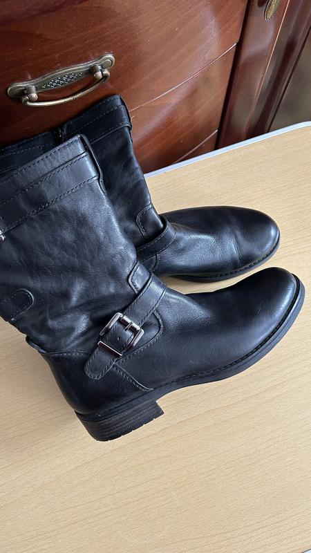 Ботинки р.42-43, стелька 27,8см, ширина 9 см, каблук 3 см, высота до подошвы 23 см, ширина голенка регулируется пояском.