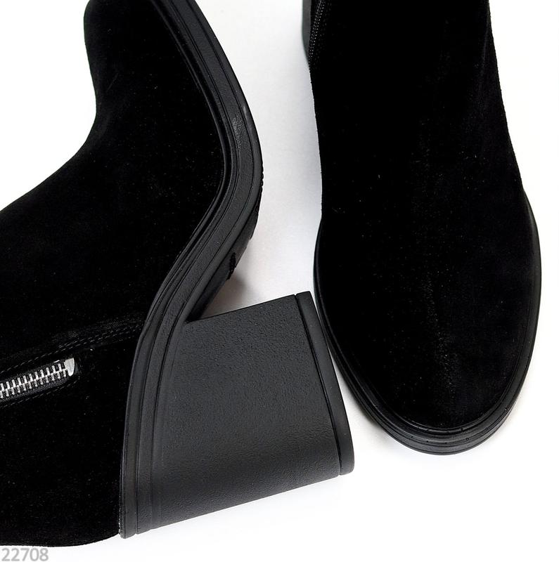 Ботильоны арт 22708 Размеры: 36-40 Материал: натур замша Внутри: флис Сезон: деми Цвет: черный Высота от пятки: 10,5см Каблу: 9,5см Рабочая молния с внутренней стороны Производитель - Украина На среднюю стопу Размер в размер 36-23,5 см 37-24 см 38-24,5 см 39-25,5 см 40-26 см Цена дроп/опт: 1990 грн