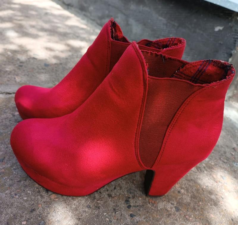 Очень классные, красные замшевые ботильоны) на ножки смотрятся непревзойденно😍 Есть один дефект, виден на фото, а так они просто идеальны)
